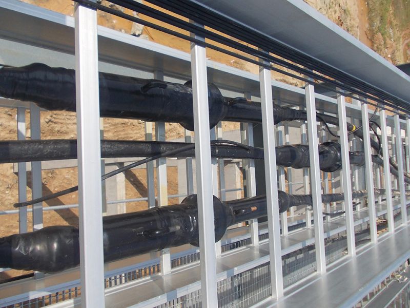 終端應(yīng)力錐采用三元乙丙橡膠(EPDM)高壓注橡成型,由彈簧錐托頂緊于環(huán)氧套管內(nèi)錐形壁上,克服了應(yīng)力錐由于材料老化帶來的彈性松弛、應(yīng)力錐與電纜外半導(dǎo)電層接觸不良等弊病,以確保終端長期安全穩(wěn)定運行;終端為全干式結(jié)構(gòu),杜絕了泄露問題;產(chǎn)品結(jié)構(gòu)緊湊、重量輕、體積小、大大減少了安裝空間;終端與電纜的連接方式為插拔式,安裝簡便,易于維護(hù);插板式GIS終端還適用于電力電纜與變壓器的連接,取消了油/油套管或油/氣套管(象鼻子),節(jié)省了大量空間;短型插拔式GIS終端加裝出線桿后,又適用于與長式GIS終端配套的GIS設(shè)備。